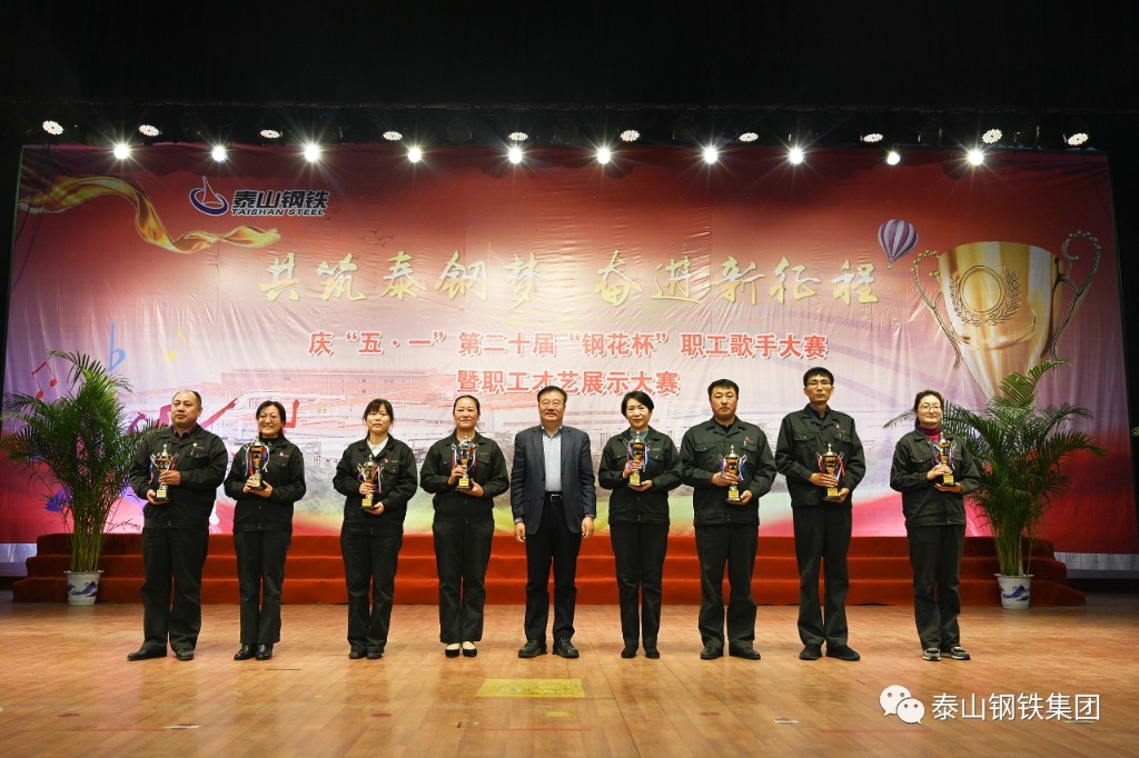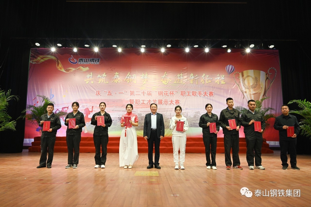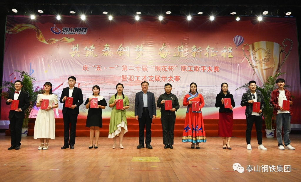 4月29日,泰山钢铁集团在中心会堂举行了庆“五·一”第20届“钢花杯”职工歌手大赛暨职工才艺展示大赛汇报演出。集团党委书记、董事长王永胜出席并为获奖单位及个人颁奖。