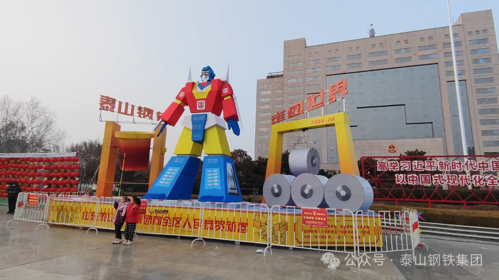 节日的广场处处洋溢着新春的喜庆氛围。蓝白红相间的钢铁巨人,奔流不息的金色钢水,紧张有序的钢带吊运……集团制作的花灯,钢铁元素满满,吸引着游玩的市民们驻足观赏、拍照留念。