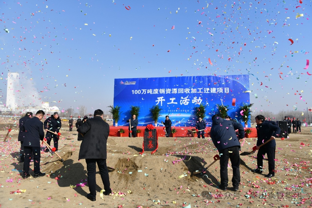 雪霁初晴,惠风和畅。碧蓝的天空下,青翠的绿植和鲜红的主席台渲染着热烈而喜庆的氛围,将“100万吨废钢资源回收加工迁建项目开工活动”几个大字映衬得分外醒目。主席台东侧,是一字排开的重型卡车;西侧,是高悬着“厉兵秣马 众志成城”“万众一心 勇攀高峰”等条幅的大型工程车辆。