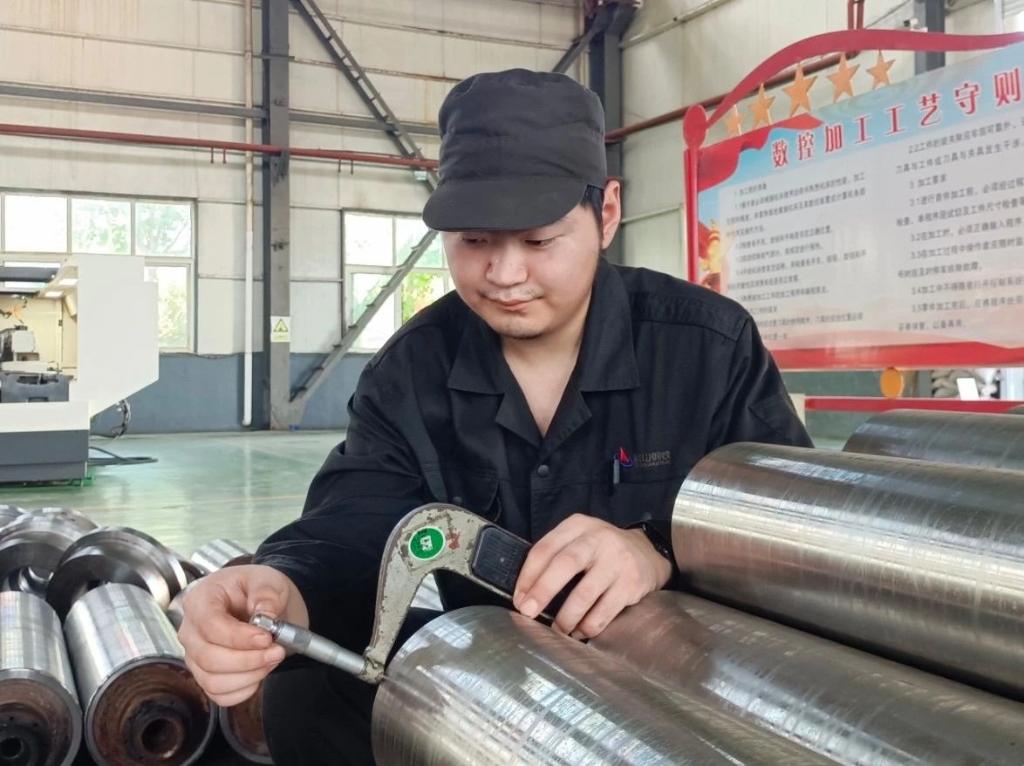 在此后的工作中,吕泽群立足本职岗位,在干中学、学中干,积极投入到各项加工任务中,从实践中提升自己的技术水平。一次,车间承接了为冷轧加工定距环的任务。在此过程中,需要钻24个定位孔,位置公差和孔间距精度必须控制在0.04毫米以内。由于加工精度要求极高,普通数控车床已无法满足加工需求,车间决定启用全新的数控龙门加工中心。面对新设备复杂的操作界面与编程系统,吕泽群主动承担任务,白天跟老师傅学习,晚上钻研机械加工工艺与编程知识。一个月后,他不仅熟练掌握设备操作,还总结出高效加工方法。加工中,他发现环类件定位编程耗时长,便与调度员魏铖合作设计专用工装卡盘,将定距环加工速度提升50%。此后,他们还将该方法应用在不锈钢驱动辊法兰加工中,单件加工时间缩短20分钟,起到了良好效果。经过不懈努力,吕泽群的专业技能不断提升。2024年,他在厂内技术比武中,凭借着扎实的理论基础和精湛的实操技能,从众多选手中脱颖而出,荣获第二名的好成绩。如今的吕泽群,已从一名青涩的职场新人成长为车间的技术骨干。但他始终保持着谦逊好学的态度,每天依然不停地学习钻研业务。在他看来,机械加工是一门永无止境的学问,只有不断创新突破,才能有效解决实际问题。“在下一步的工作中,我将坚持学习新技术、研究新工艺,争取在工作中取得更加优异的成绩。”吕泽群坚定地说。